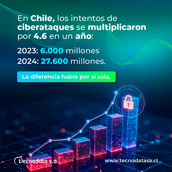 📈 El volumen y la sofisticación de las amenazas digitales en Chile crecieron de forma explosiva en solo un año. Los atacantes utilizan inteligencia artificial y automatización para escanear y vulnerar sistemas a una escala nunca vista. El ransomware y el phishing siguen siendo protagonistas, pero la magnitud del fenómeno muestra que ninguna empresa ni institución está a salvo. En Tecnodata ayudamos a organizaciones a fortalecer sus defensas: ✅ Soluciones de ciberseguridad de última generación ✅ Implementación de estándares exigidos por la nueva Ley Marco de Ciberseguridad ✅ Monitoreo, prevención y respuesta rápida 🔍 El momento de reforzar tu seguridad es ahora. Conversemos sobre cómo blindar tu operación.